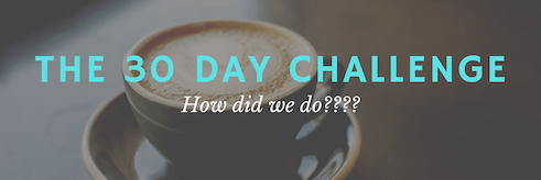 Just over a month ago we started our 30 day challenge to stay Starbucks free. As a self-professed Starbucks addict who, for the past several years (*ahem*… decades), has rarely missed a day of picking up my Venti Decafe Americano with coconut milk, one would think this challenge would have been……….well….challenging!