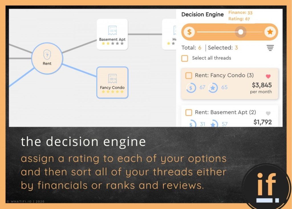 It utilizes your own customized rankings to filter for your optimal thread. Meaning the app allows you to rank each decision/choice/experience along your storyboard in terms of how you feel about it. Not just from a numbers perspective, but how well it aligns with your personal goals and quality of life.